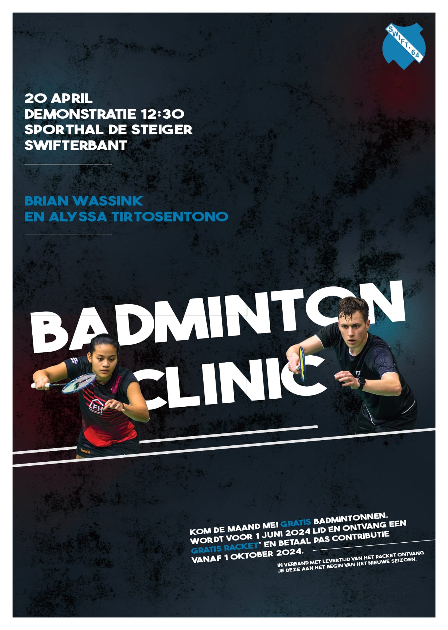 Maar liefst twee Nederlands Kampioenen: Alyssa Tirtosentono (dames dubbel) en Brian Wassink (gemengd dubbel) komen een clinic geven en verzorgen een demonstratie. Als afsluiting willen we alle oud-leden uitnodigen voor een reünie. Dit allemaal vanwege het 60 jarig bestaan van onze vereniging.